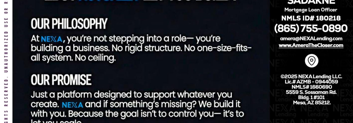 NEXA INSIGHTS - Amera Sadakne -Mortgage Loan OriginatorHi, my name is Amera Sadakne. I’m a Loan Officer with NEXA Lending LLC., offering personalized mortgage solutions, fast customized quotes, great rates and service with integrity.
